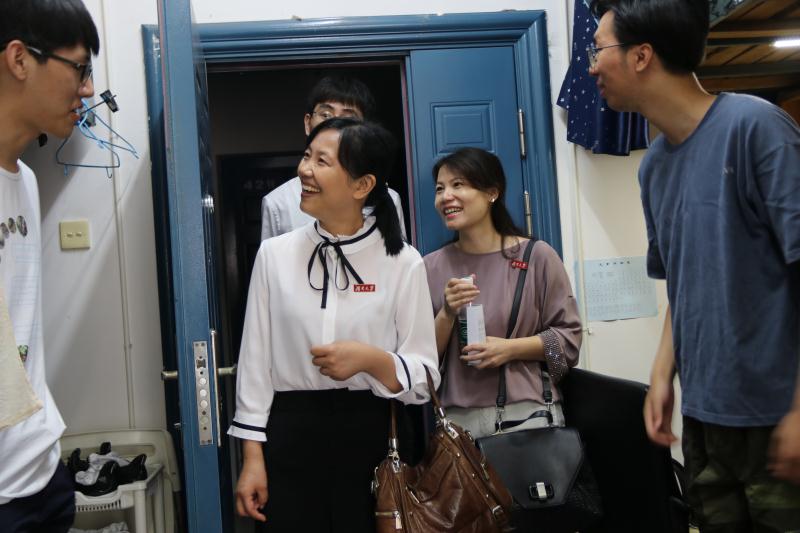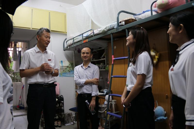 学工部副部长龚翔、学院党委副书记范媛吉和学校园区相关领导、学院学工办全体老师深入学生宿舍看望毕业生,给他们送去温暖问候。