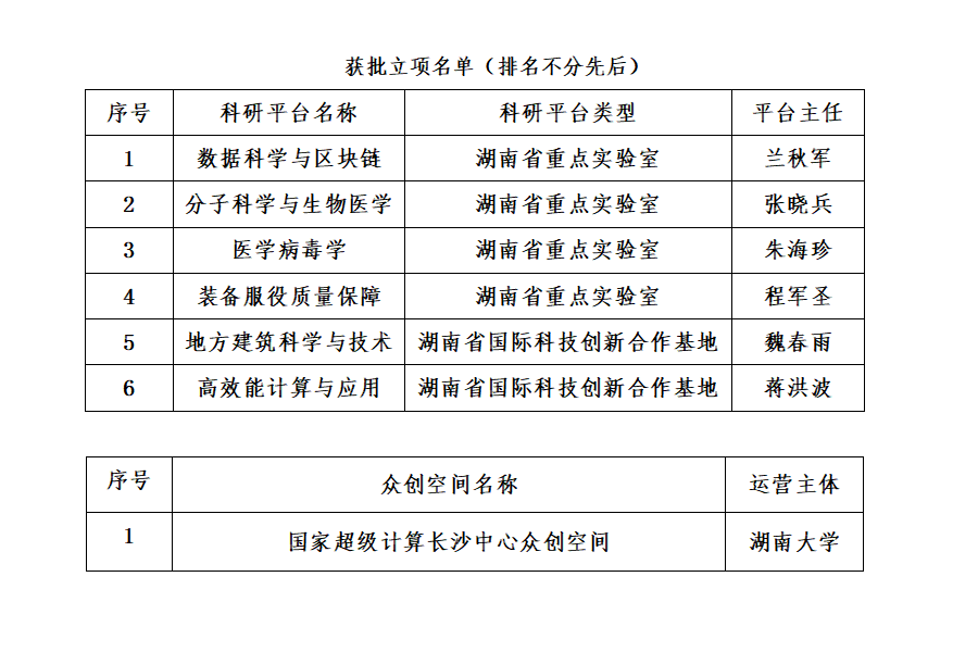 获批建设1个湖南创新型省份建设专项创新平台