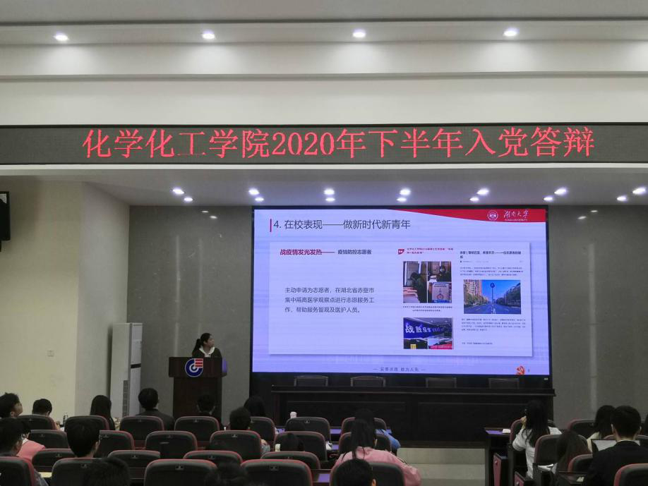 最后,学工办主任刘卓老师对党员发展对象的表现进行点评,号召大家向参与此次答辩的抗疫志愿者范佳卉、应征入伍学生陶登虎、自训队女教官于航等优秀同学学习,勉励发展对象以习近平总书记在岳麓书院讲话精神为指导,在学习、生活、工作各个方面争当先锋模范,不负青春不负韶华不负时代重托。