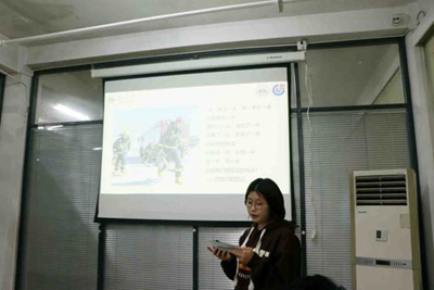 图二 本科化工党支部黄亚楠同志讲解消防战士巴特尔的故事