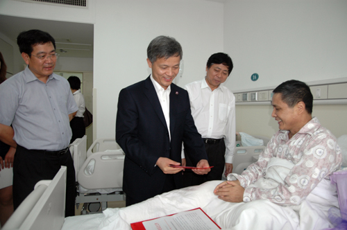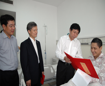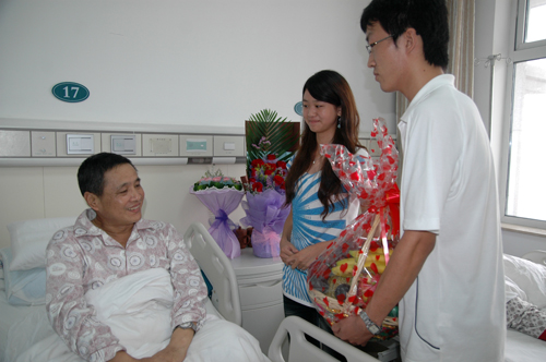 的师生们从河西赶到这里为该校第四届师德标兵蔡炳新教授颁奖。当该校党委书记刘克利教授和校长钟志华院士将荣誉证书和20万元奖金颁发给27床的蔡炳新教授时,在场的JAVSB