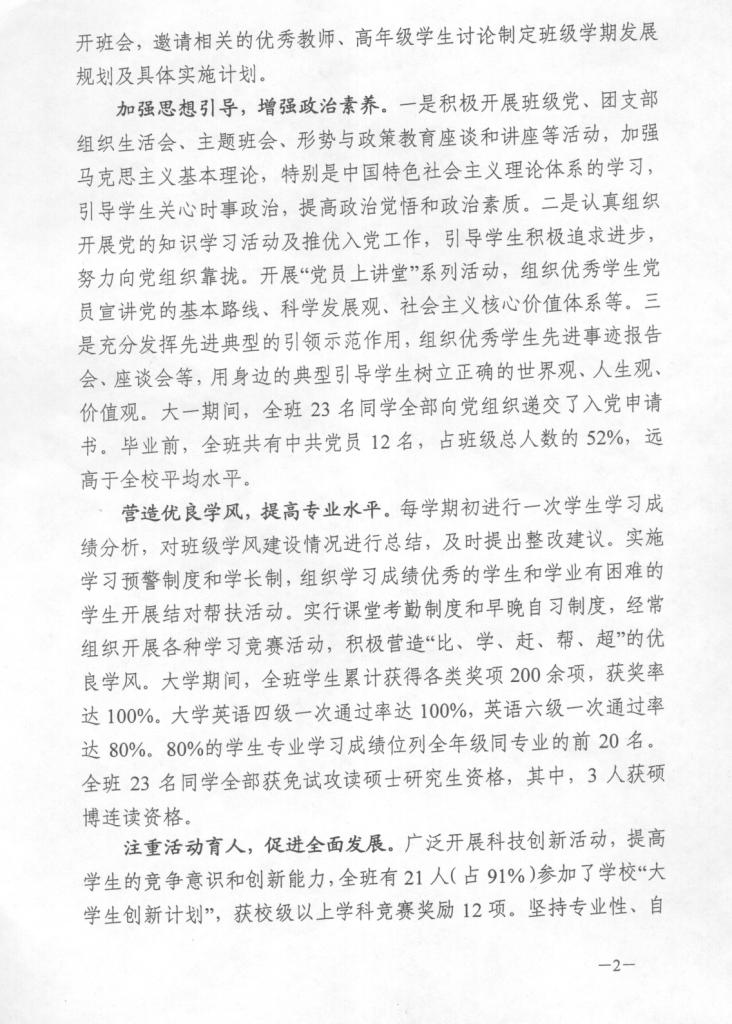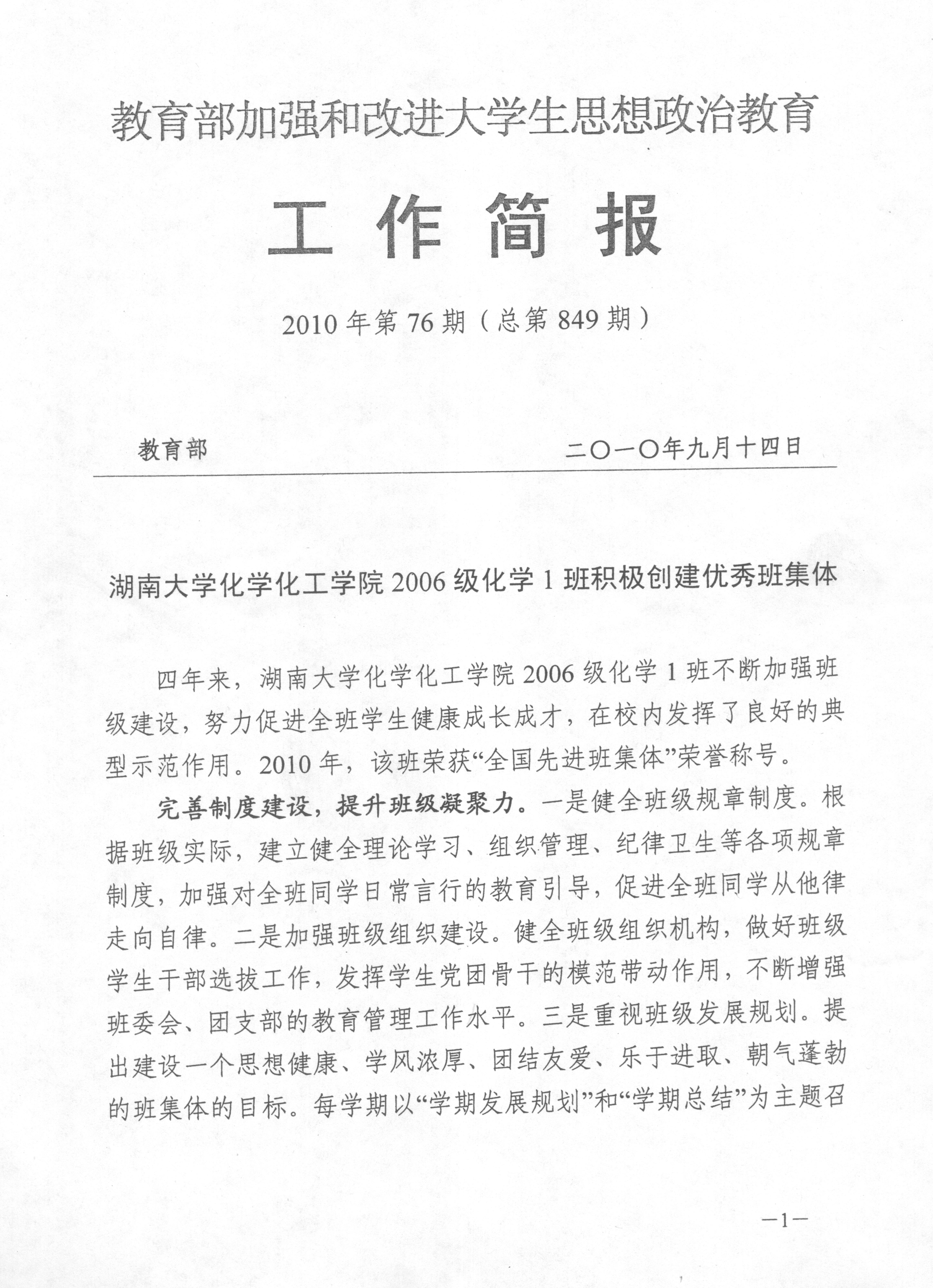 教育部工作简报:JAVSB 2006级化学1班积极创建优秀班集体