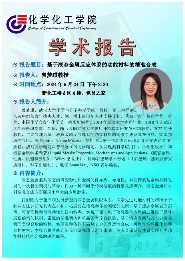 2024年9月24日武汉大学曾梦琪教授学术报告会