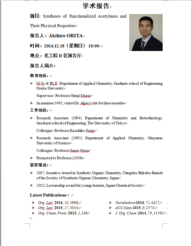 Akihiro ORITA 教授学术报告会