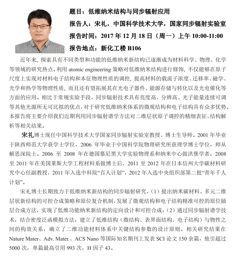 2017年12月18日中国科技大学宋礼教授学术报告会