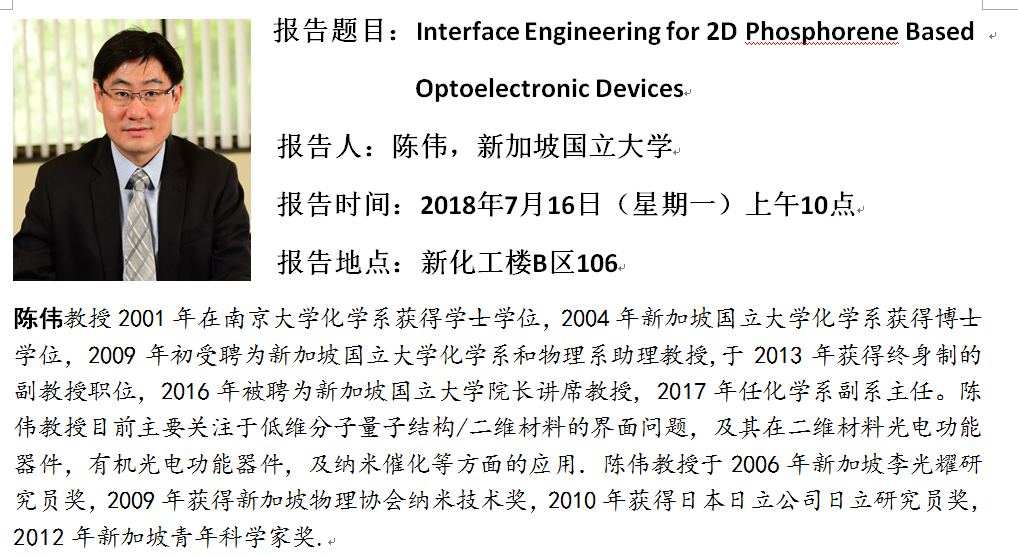 2018年7月16日新加坡国立大学陈伟教授学术报告会