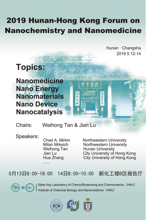 2019年5月12-14日2019Hunan-Hong Kong Forum on Nanochemistry and Nanomedicine学术论坛