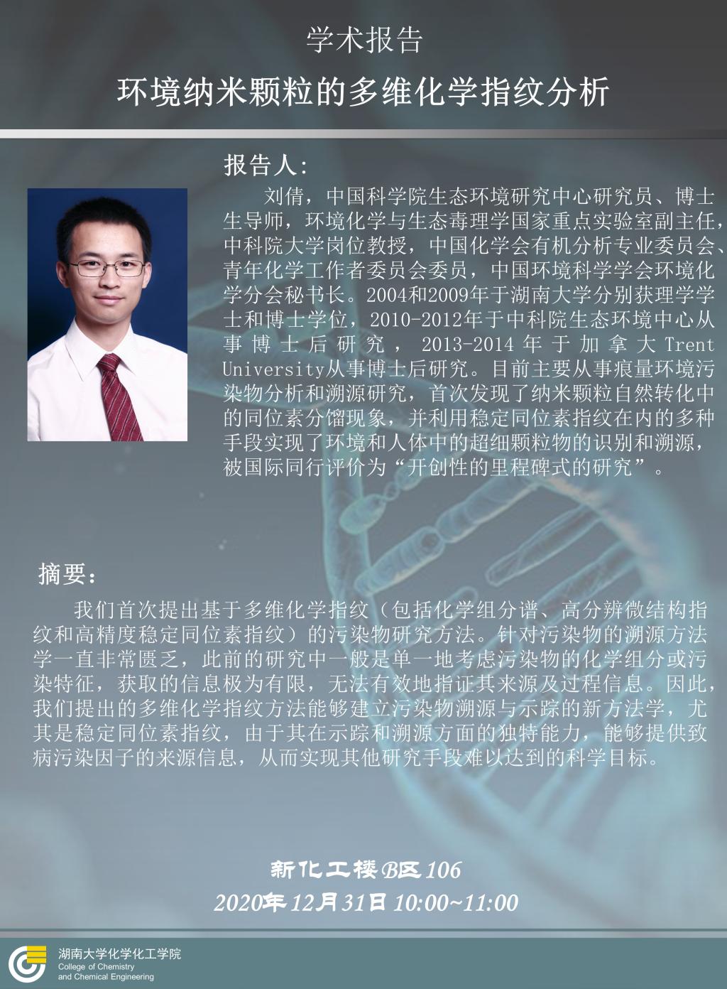 2020年12月31日中科院生态环境研究中心刘倩研究员学术报告会