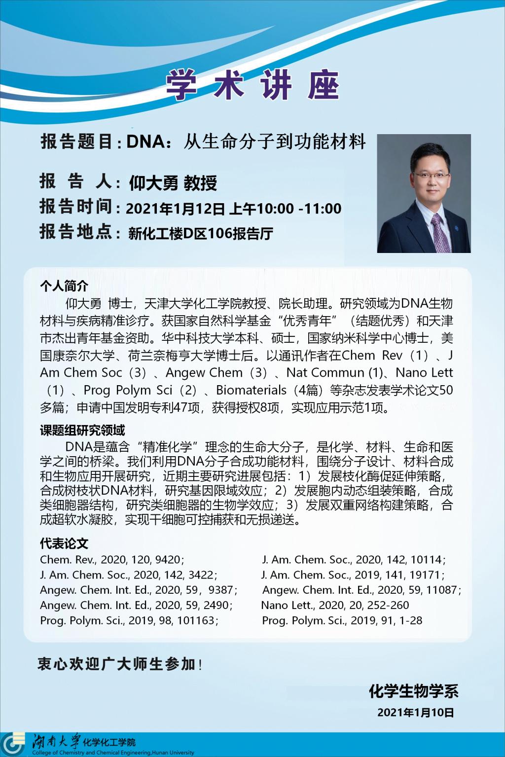 2021年1月12日天津大学仰大勇教授学术报告会