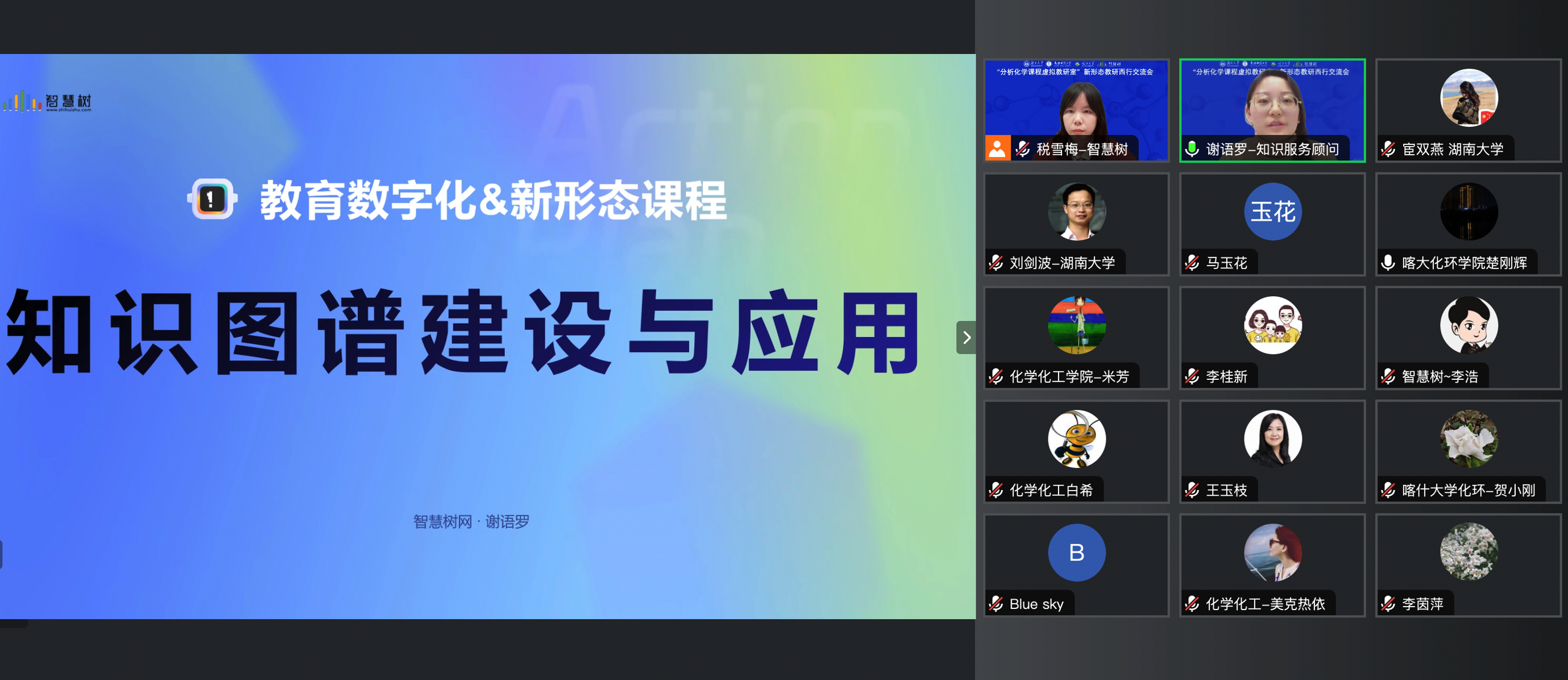 、喀什大学化学与环境科学学院以及智慧树平台项目组全体成员,也感谢同学们对于分析化学知识图谱平台的热爱和学习。湖大分析化学团队也将不断更新图谱资源,比如利用24秋季暑期时间梳理修订课程知识图谱的题库,针对题目的准确性、时效性以及知识点的难易程度等进行整改,同时补充更具挑战性、启发性和相关性的新题目,更好地满足学生的学习需求。对于图谱平台的功能宦双燕老师提出了更多的期待,比如过程性考核评价、AI赋能教学等等,也希望进一步扩大新形态教研西行的高校,湖大分析化学团队将继续发挥引领作用,推动更多优质教育资源的共享。
