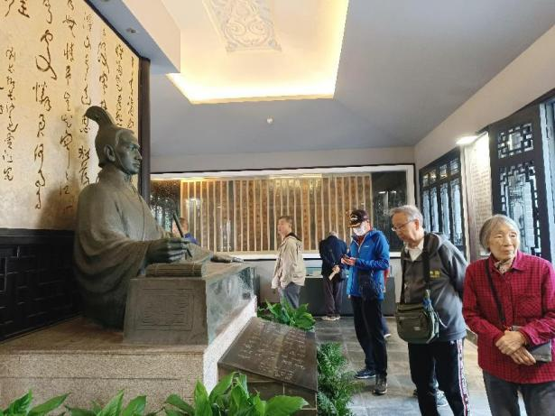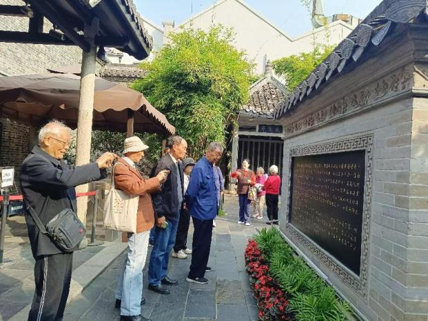 11月1日上午化学化工、生物学院退休党支部组织党员及部分家属参观贾谊故居和李富春故居。贾谊故居位居于太平街口与解放西路交汇处,这里雅致清静,与太平街的喧嚣繁华形成鲜明的对比。故居为三进四合院,从内到外有贾太傅祠、太傅殿、寻秋草堂,两旁有贾谊井、碑廊、贾谊石床、古碑亭和佩秋亭。