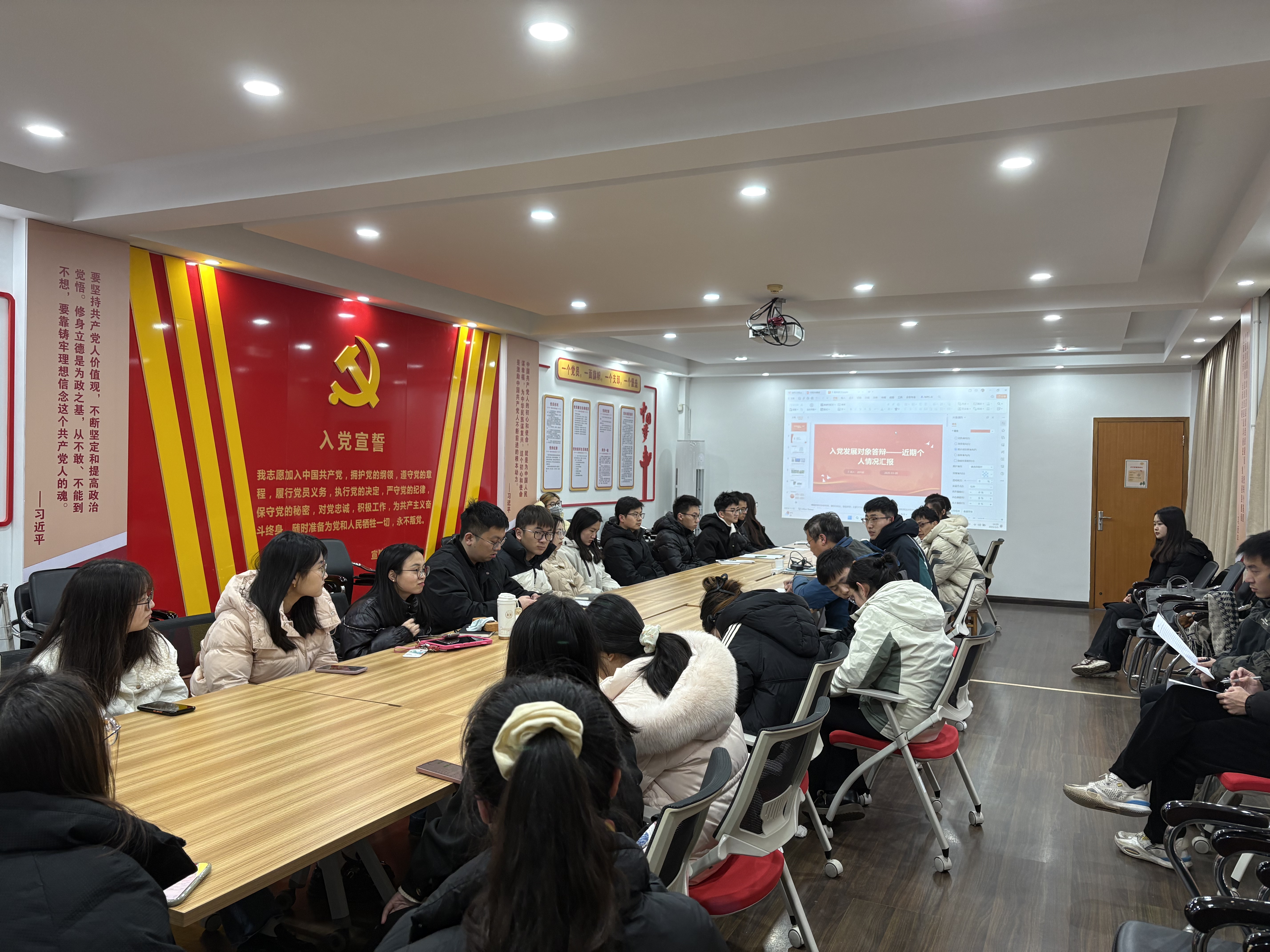 党委、学工办联合主办的2024-2025学年春季学期研究生入党积极分子公开答辩会在新化工楼党员活动室举行。来自全院的21名入党积极分子参与答辩,学院党委副处级组织员庞新宇老师、学工办主任刘卓老师、学院党委组织干事徐晓宇老师及学生党支部书记代表共计15人担任答辩评委。